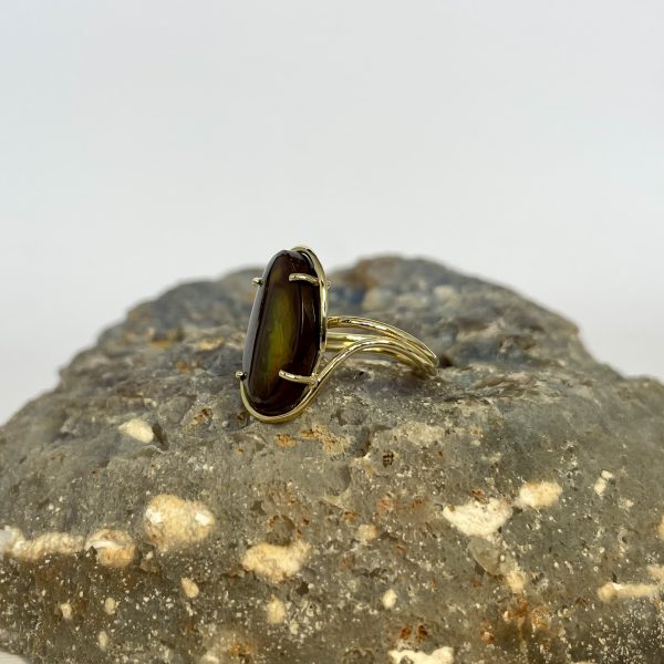 Anello con Agata di fuoco Messicana con montatura a fili in oro giallo 18KT